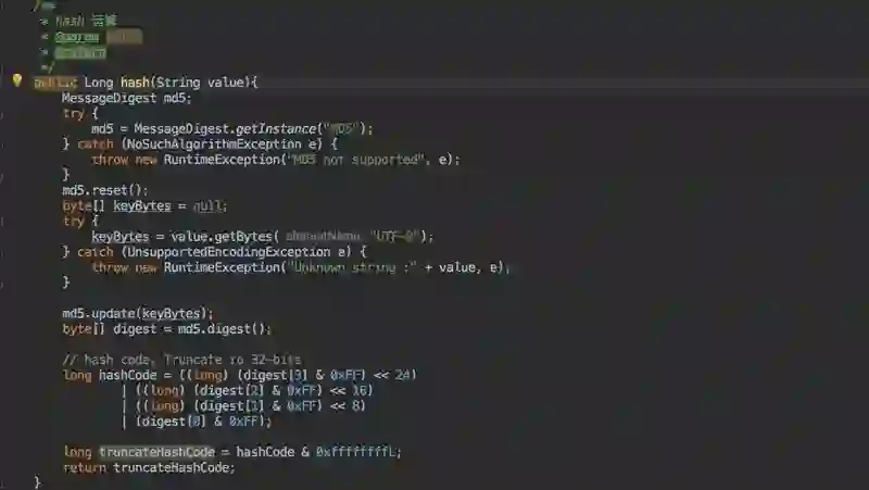 这里的算法摘抄自 xxl_job,网上也有其他不同的实现,比如 FNV1_32_HASH 等;实现不同但是目的都一样。