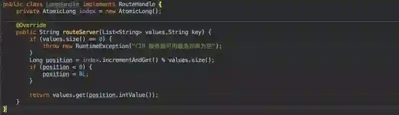 其中只有一个方法,也就是路由方法;入参分别是服务列表以及客户端信息即可。