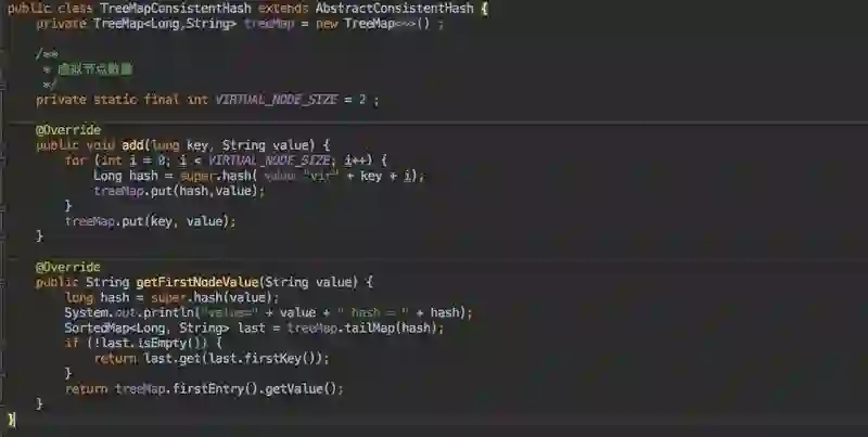 ps:这里同样也没有 hash 方法以及虚拟节点(具体实现请看下文),因为 TreeMap 和 SortArrayMap 一样都是作为基础数据结构来使用的。