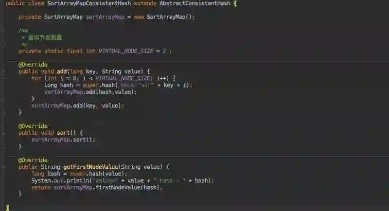 下面我们来看看利用 SortArrayMap 以及 AbstractConsistentHash 是如何实现的。