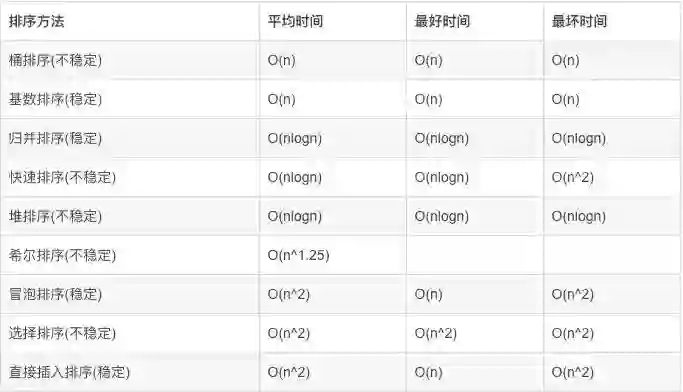 下图是目前主流排序算法的时间复杂度: