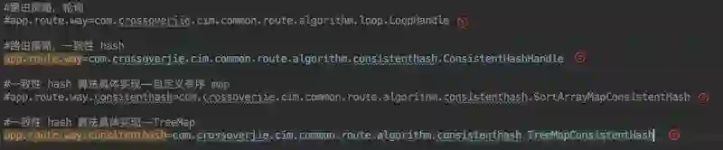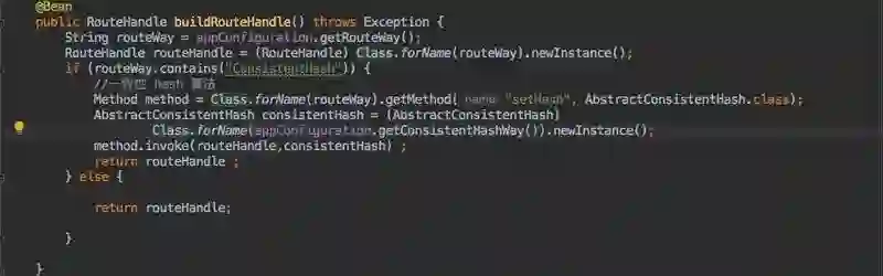 如果想使用一致性 hash 的策略,也只需要配置实现了 RouteHandle 接口的一致性 hash 算法的全限定名。