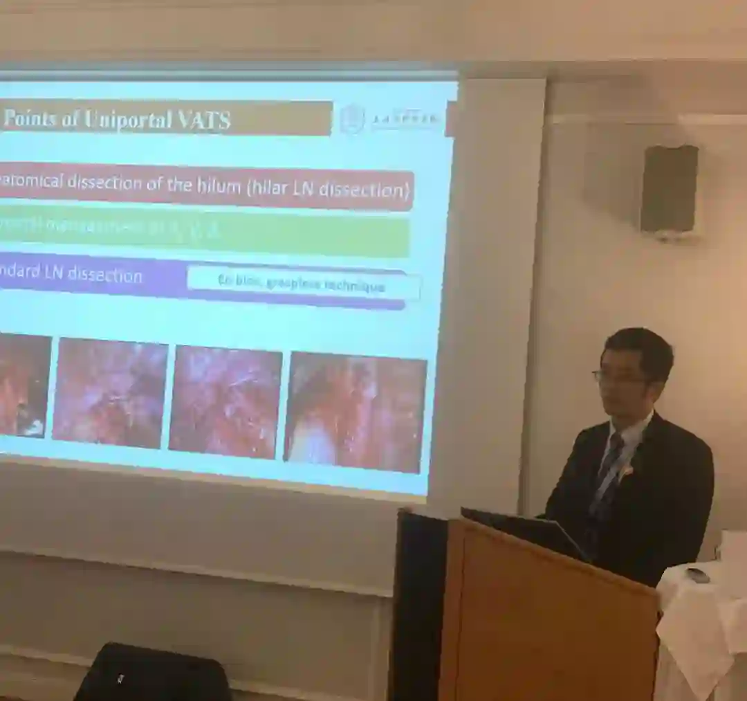 王海峰教授首先向中外专家介绍了单孔胸腔镜的发展历程,及胸腔镜手术,尤其是单孔胸腔镜手术在我院胸外科从无到有,并迅速发展壮大,直至取得另国际同行瞩目的成绩的过程。然后从技术角度分析了单孔胸腔镜的操作技巧及难点。最后介绍了同济大学附属上海肺科医院制定的肺部小结节诊治共识。参会专家对单孔胸腔镜,尤其是剑突下胸腔镜肺切除手术表现出浓厚的兴趣,进行了热烈讨论。通过此次交流,再次向欧洲胸外科专家展示了我院胸外科在微创手术领域的成绩,获得了一致好评。