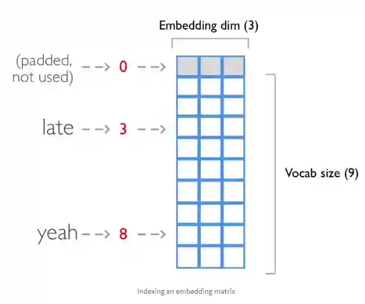 我们将这些元素转换成索引序列并通过加入 0 元素对每个序列进行填充(Zero Padding),这样每批数据就可以拥有相同的长度。