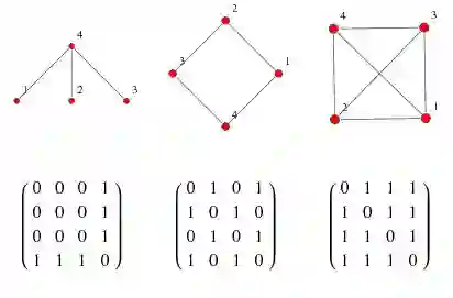 对于上面的图,可以用下面的矩阵表示,横排表示一个节点,竖列表示连接的节点值。
