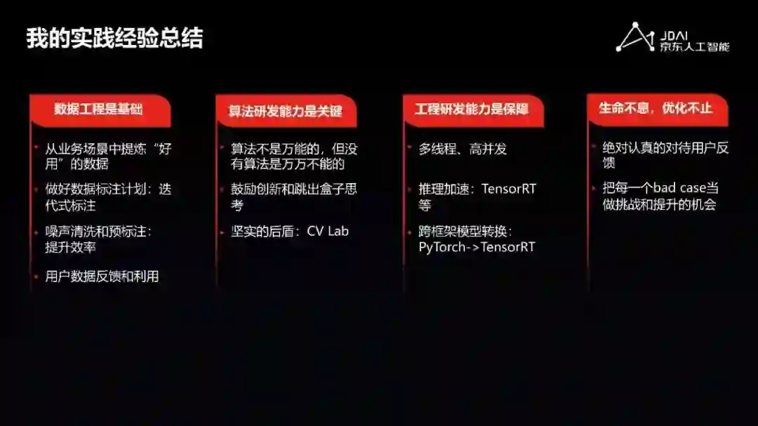 随着深度学习技术的蓬勃发展,计算机视觉技术得到了日益广泛的应用,逐步改变着我们的生活。计算机视觉的基本任务到底有哪些?作为电商平台,京东如何运用计算机视觉技术提升安全、效率和体验?如何将实际场景中的问题和挑战提炼成算法问题进行优化?本次分享从计算机视觉的基本任务出发,介绍计算机视觉技术在京东的实际落地应用与实践,并分享落地过程中的一些挑战和收获。