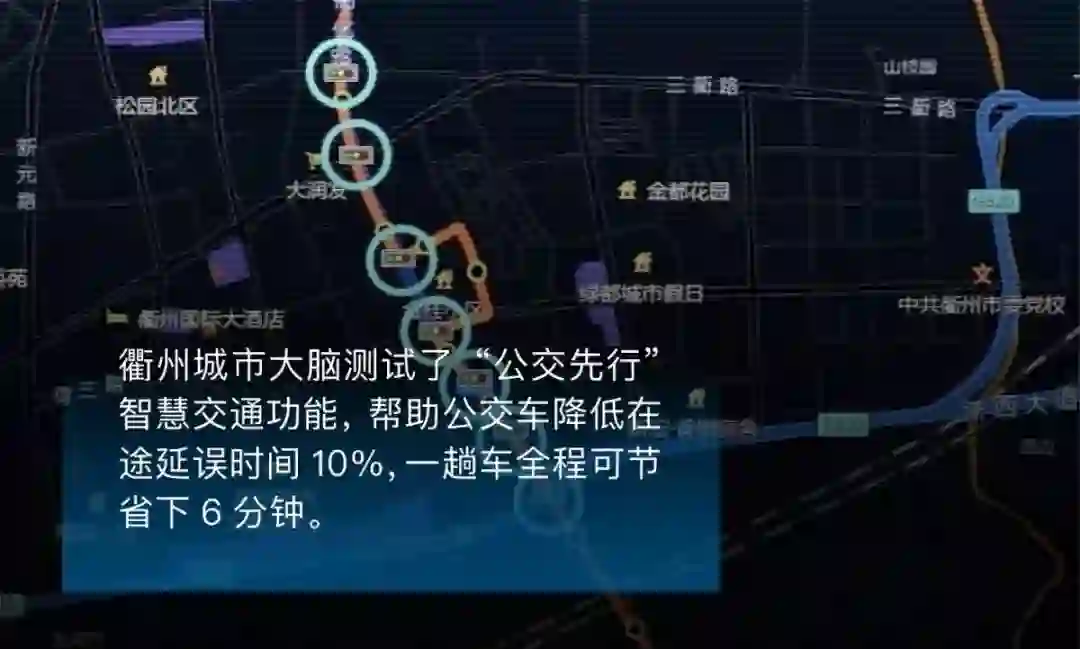 今年3月,衢州城市大脑测试了“公交先行”智慧交通功能,帮助公交车降低在途延误时间10%,一趟车全程可节省下6分钟。这就意味着,如果按日均一万人次的载客量计算,每天乘客可以节约1000个小时堵在路上的无效时间。(延伸阅读:人工智能守护百姓平安,衢州城市大脑打造中国最安全城市)