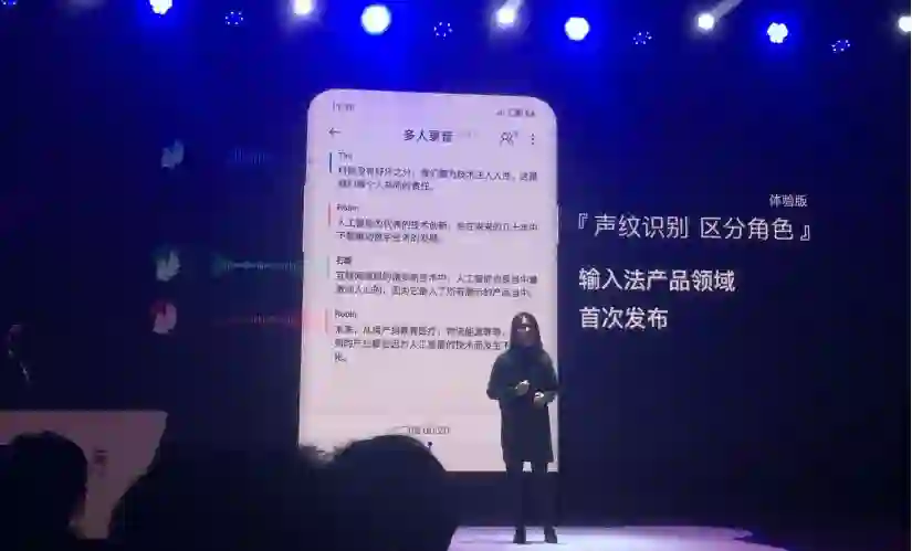 其中,「语音速记」这个功能在输入法领域,首先独家采用了「声纹识别」技术。该技术主要针对 2-3 人小型会议场景,可根据声纹自动区别发言人,实现智能化的语音识别。