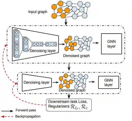这种针对拓扑结构进行修改确实也有很多讨论,比如GAT中有对边进行重新权重,或者比如DropEdge对图进行采样构造小子图避免过拟合。然而这些方法大多基于随机方法,对于下游任务很难说明为什么这些采样的信息更有帮助,其次,节点信息和图的拓扑结构应该同时去考虑什么样的信息应该被过滤。因此,作者采用参数化方法表示图拓扑结构,并对其进行去噪。