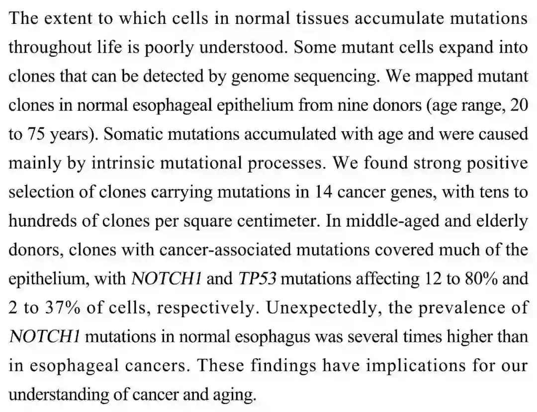 随着年龄的增长,体细胞突变体克隆在人类食管中定殖