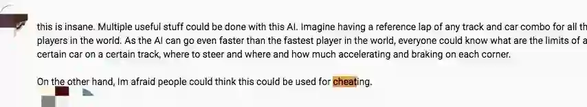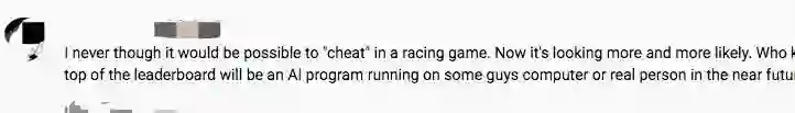 「我从没想过在赛车游戏中会有人作弊,但现在看来可能性越来越大。」