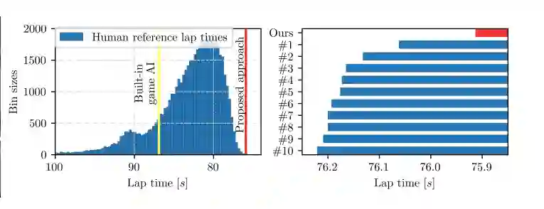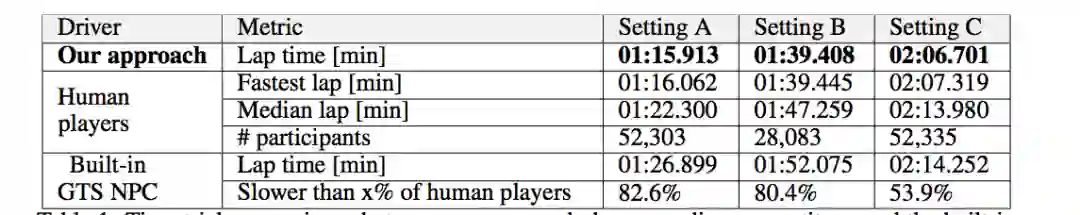,这些轨迹在性质上与最优秀的人类选手所选择的轨迹相似,而且还能在转弯时保持稍高的速度。
