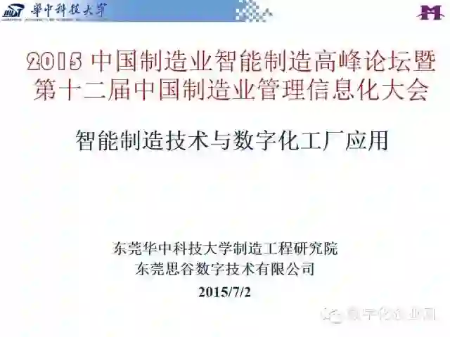 东莞华中科技大学制造工程研究院、东莞思谷数字技术有限公司在7月2日由e-works数字化企业网举办的【2015首届中国制造业智能制造高峰论坛暨第十二届中国制造业管理信息化大会】上给我们带来了智能制造的技术与数字化工厂的应用。