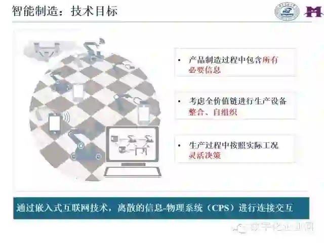 结合物联网、大数据和云计算等新一代信息技术,研究智能制造体系框架中智能工艺设计与虚拟验证、制造系统智能感知与集成、智能仓储物流、自适应生产管控、物联大数据分析等各项关键要素的发展目标、技术构成、业务流程和软、硬件系统方案,从而为企业智能制造的体系化、分阶段技术发展和应用提供指导。