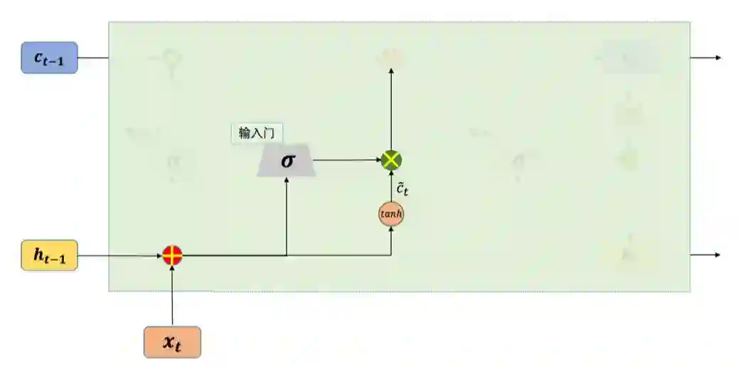 接下来我们将分别介绍LSTM中的几个“门”结构。首先看一下输入门,如图2所示: