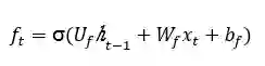 LSTM中也有类似于RNN(这里特指前面介绍过的简单结构的循环神经网络)的前向计算过程,如图2,如果去掉输入门部分,剩下的部分其实就是RNN中输入层到隐藏层的结构,“tanh”可以看作是隐藏层的激活函数,从“tanh”节点输出的值为: