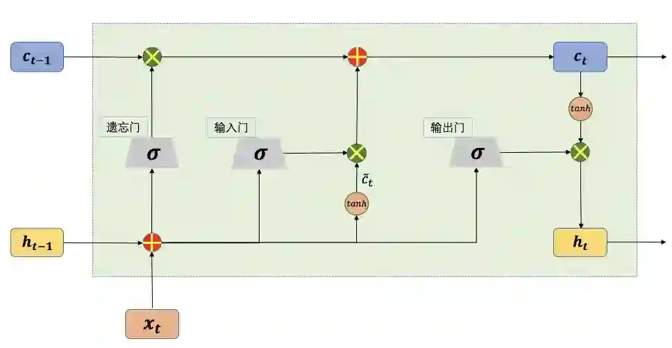 在LSTM中有三个称之为“门”的控制单元,分别是输入门(input gate)、输出门(output gate)和遗忘门(forget gate),其中输入门和遗忘门是LSTM能够记忆长期依赖的关键。输入门决定了当前时刻网络的状态有多少信息需要保存到内部状态中,而遗忘门则决定了过去的状态信息有多少需要丢弃。最后,由输出门决定当前时刻的内部状态有多少信息需要输出给外部状态。