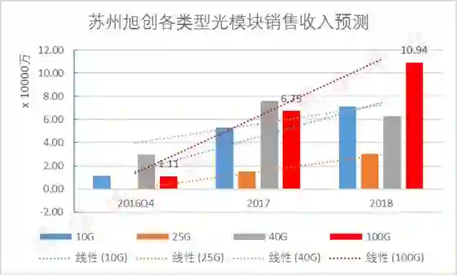 而旭创呢,今年10G以下的光模块销量已经压缩到24%,40G、100G的产品占比分别为35%、32%。