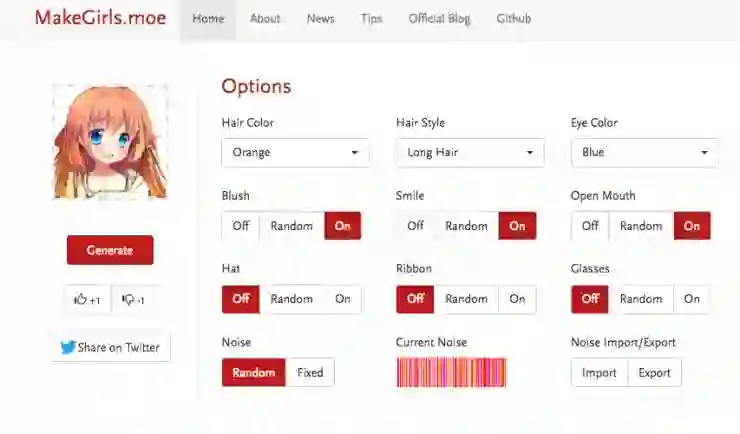 对于用户来说操作非常简单,只需要选择自己喜爱的头发、眼睛、微笑、张嘴等等特征,然后点击“genrate”就可以通过训练出的AI模型来生成一个动漫人物。该网站上线后数天,访问量便增加到10k+每小时。其repo在github trending上也一度排到第四位。该网站所使用的技术在其论文「Create Anime Characters with A.I. !」中进行了详细说明。