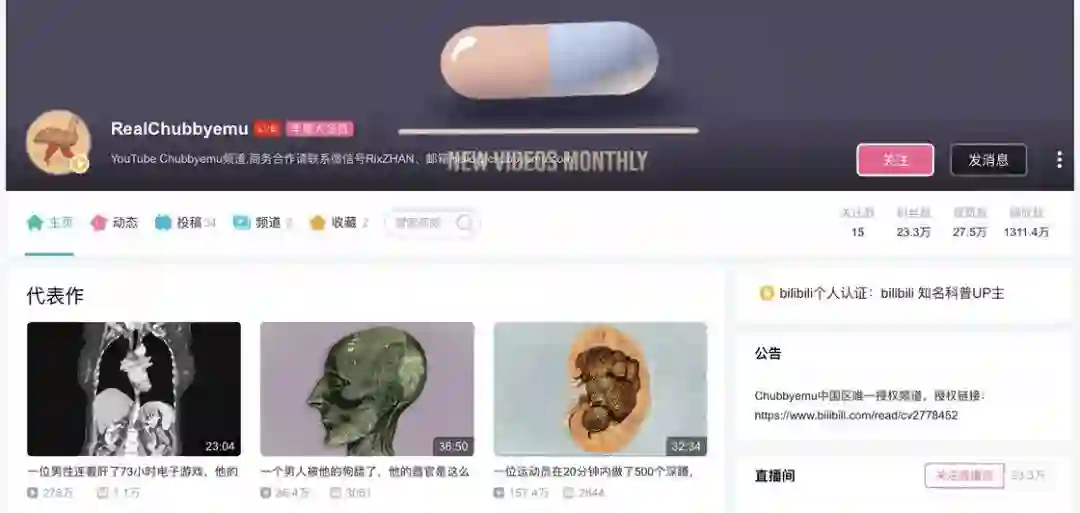 值得一提的是,B 站上的 Osmosis 并非官方团队运营的账号,而是由官方正式授权搬运的中文频道(频道下有发布中英双语的授权信),视频会与 YouTube 保持同步。