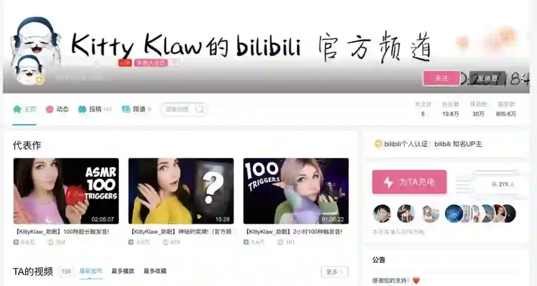 ASMR ,又称「自发性知觉高潮反应」,一般通过视频、音频等方式让人感受到放松、舒适。尽管有些人对此类内容有所排斥,但如果你能接受这一类视频的话,相信 KittyKlaw 不会让你感到失望。