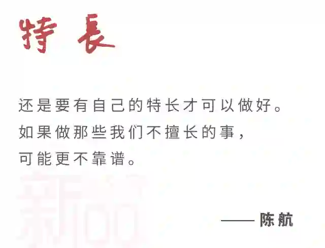 「还是要有自己的特长才可以做好。如果做那些我们不擅长的事,可能更不靠谱。」陈航告诉「新经济100人」。