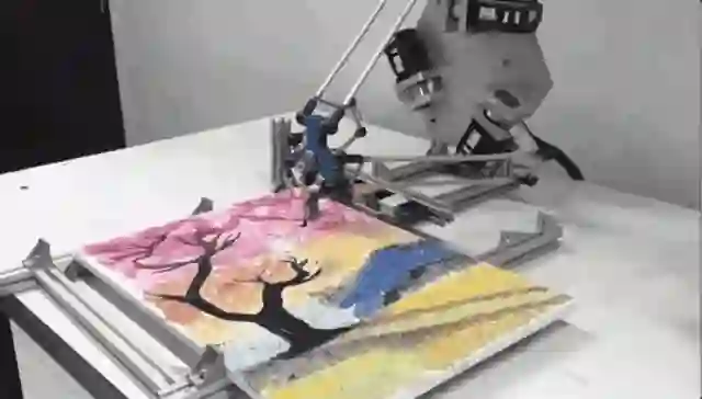 有的高级算法将原画简化成几十到几百种不同的色彩;再通过数字定点,控制机械臂把颜色涂在相应的位置,等到所有颜色都涂完,一张画就大功告成了。