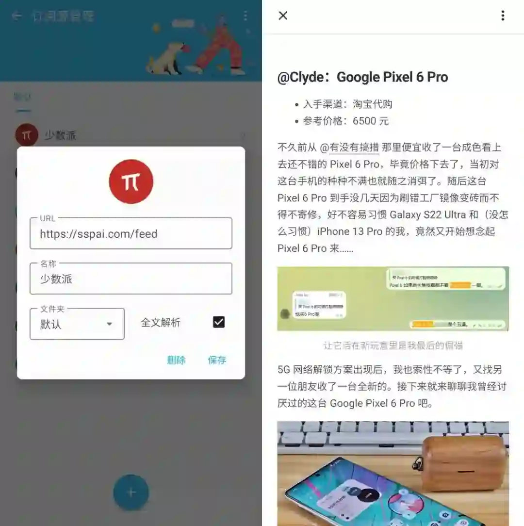 少数派坚持提供 RSS 源,但由于一些众所周知的原因迫不得已关闭了全文输出,许多习惯使用 RSS 内容的读者还是需要多点一步跳转到主站来阅读全文。如果使用了 Folio Reader 就方便多了,如果你为某个订阅源开启了「全文解析」功能,那么它会尝试解析原文链接中的内容。实际体验下来,原文中的图片、链接和格式化内容都可以正常显示,阅读效果非常不错。这种「曲线救国」的全文阅读方式,既方便了用户完成阅读,也能提高恶意扒文的成本,尽可能保护原创者的权益。