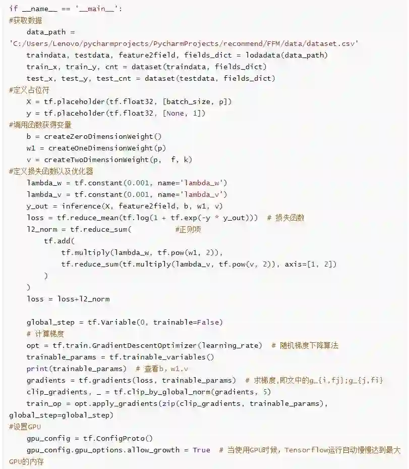 FFM是一个细化隐向量非常好的方法,官方也给了实现FFM的libffm。为了更好地理解FFM是如何工作的,我们用FFM来实现一个简单的二分类。代码主要包含两部分内容,分别为data.py、FFM.py.