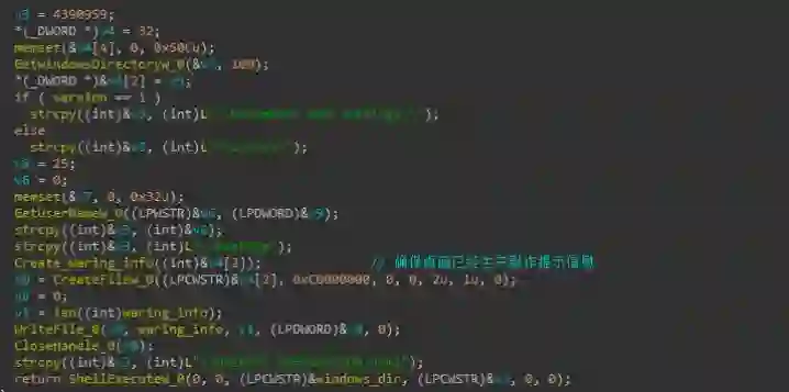该勒索病毒同时还会对系统版本是XP、Server2000、Server2003和Server2003 R2的中招机器进行额外的内存处理。