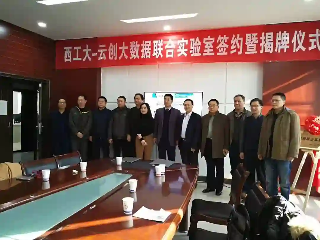 2017年12月19日,西工大-云创大数据联合实验室签约仪式暨揭牌仪式在西北工业大学长安校区计算机学院隆重举行。西北工业大学工业和信息化部大数据存储与管理重点实验室主任李战怀教授、教务处实践教学办公室主任范乃强、计算机学院软件系副系主任张晓副教授、计算机学院博导陈群教授、大数据联合实验室主任潘巍副教授等共同出席了签约仪式,西北工业大学计算机学院副院长尚学群教授与云创大数据总裁刘鹏教授代表双方签约大数据联合实验室,并共同为实验室揭牌。