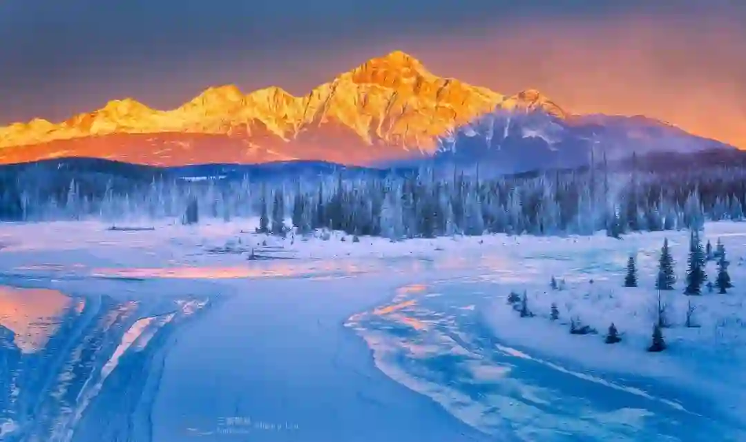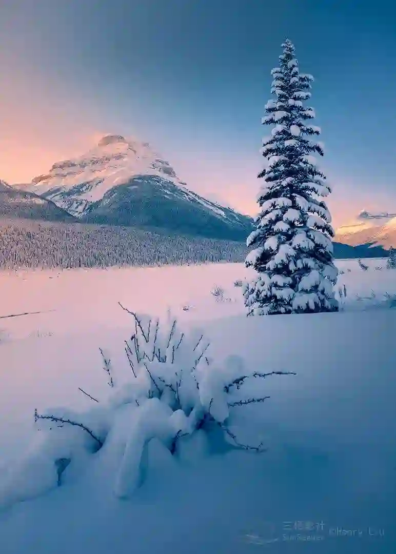 (班芙公园冰原大道的日落, -26°C)
