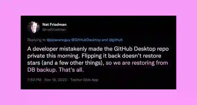 GitHub团队自己就曾不小心将GitHub桌面应用程序的托管页面设为私有一次。