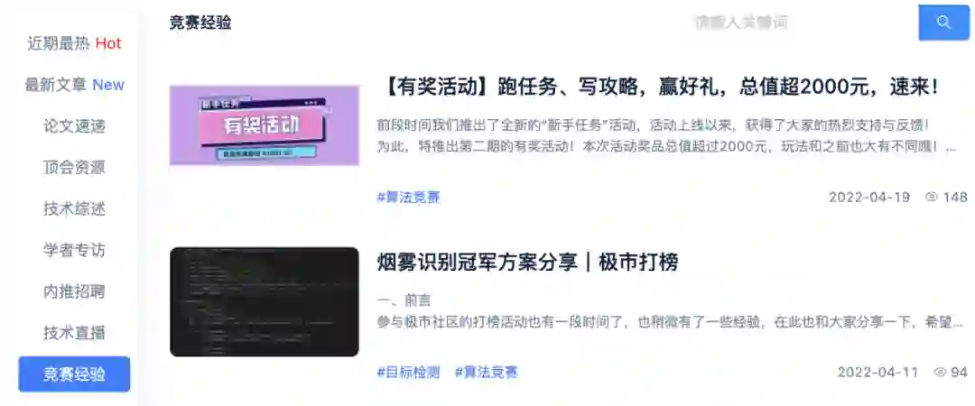 “竞赛经验”类别包含了极市打榜冠军的方案总结与经验分享,还有许多通用的竞赛技巧: