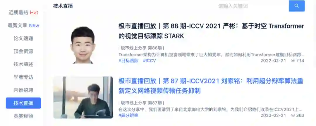例如,点击“技术直播”类别,就可以看到自2017年以来全部的极市直播资料: