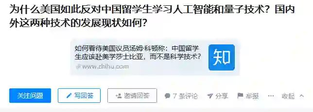 整个讨论观点分为三个:1、中国留学生已经在学习相关学科,并且有了一定的席位;2、中国有学习美国的必要,两者AI与量子技术还存在差距;3、美国议员不代表美国,科顿只是打嘴炮实际没啥用。