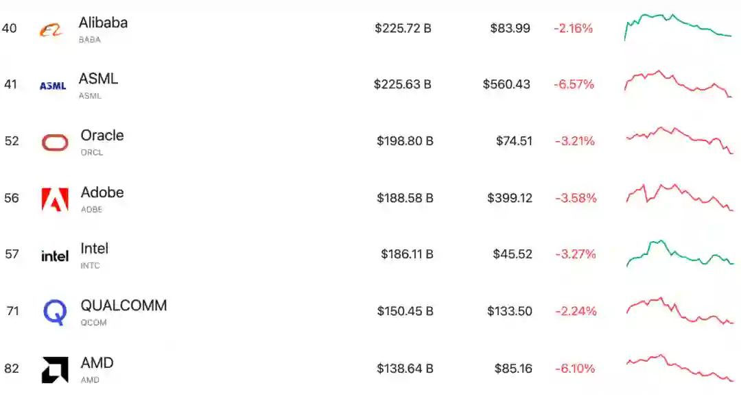 阿里基本上和光刻机一哥ASML平分秋色,分别是2257亿美元和2256亿美元。