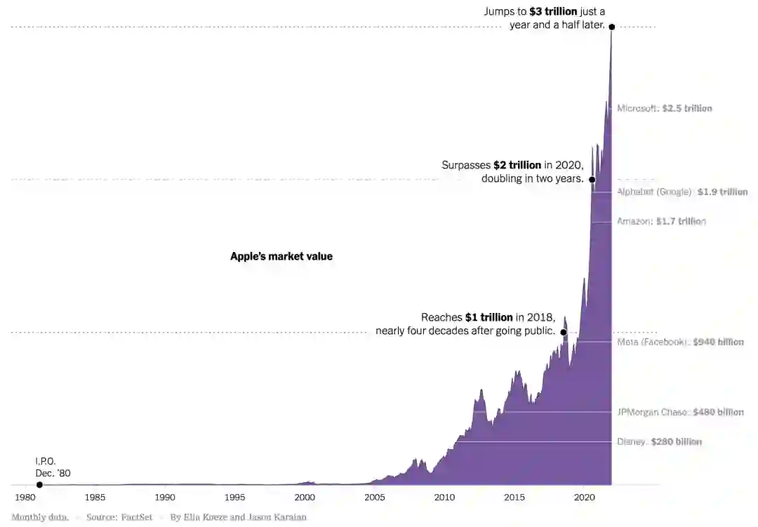 然而两年后的2022年,苹果的市值已经达到了26581亿美元。