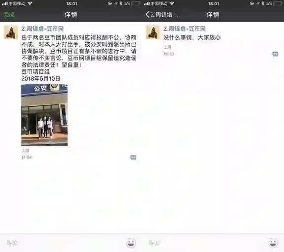豆币周锦增澄清:和团队打架被叫到派出所协调 望造谣者自重