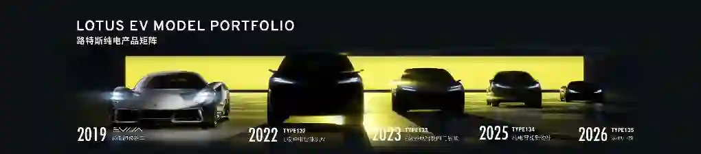 在电动化、智能化的新时代,路斯特也希望有新的展望、新的目标与理想。路特斯正在推进的纯电产品布局,并已在 2019 年推出了纯电 Hyper car——Evija,这也是全球范围内第一辆纯电的超跑车型。以 Evija 为设计启发,路特斯未来 5 年内还会推出 E 级 SUV TYPE 132,E 级四门轿跑 TYPE 133,纯电新物种 TYPE 134 以及纯电小跑 TYPE 135。