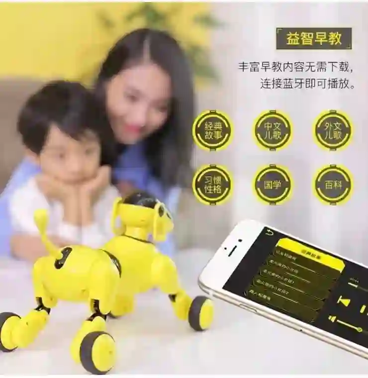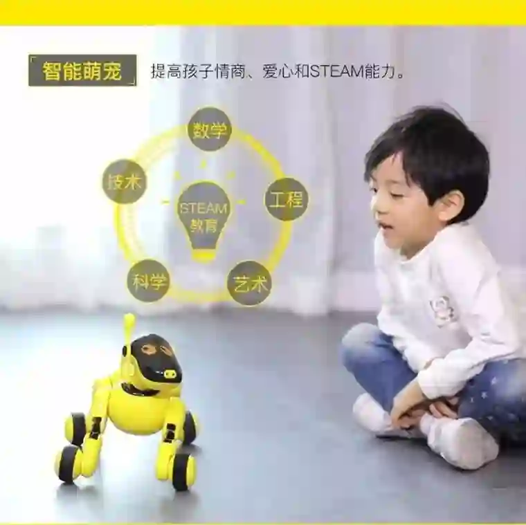 而且这只小狗也有3D可视化编程,小朋友可以自己设计狗狗跳舞的动作。还能听懂小朋友说的话,比如趴下、打滚、坐下、转圈等动作比真实的小狗还听话。此外玩节奏大师,给小朋友讲故事啊,播放音乐什么的也不在话下。
