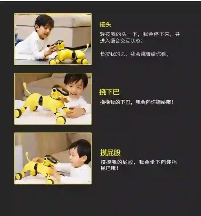 可旺可不是一个普通的玩具,它是集合了AI智能的仿生狗。有着像真狗狗一样的反应。比如你摸摸它的下巴,和摸摸它的后背,它还真的能跟你撒娇呢。对于那些喜欢狗狗而不幸家里又有对狗毛过敏,或者觉得照顾狗狗很麻烦的家庭,真是一个不错的选择。