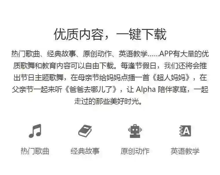 还有很多其他优点,比如环保材料、设计安全,还有电池的低能耗设计等等等等,这里就不一一介绍了。最后上个视频,看看我们的阿尔法机器人的舞蹈方面的造诣有多高的。而且它不仅能单手俯卧撑,其平衡力也比很多人都强了。