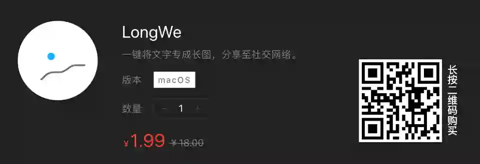 LongWe 是一款支持文字转长图的 Mac 应用,它可以帮你一键生成排版精美的长图,并分享到微信。由于应用是基于在 Markdown.app 开发的,因此除了能够高效导出图片外,LongWe 也拥有不俗的写作体验。