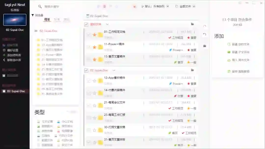 tagLyst 补足了 Windows 在标签管理上的不足。应用通过局部标签系统让你可以为有用的文件打上标签,并且在应用内提供了资料库,帮助你管理重要文件。在筛选上,tagLyst 也支持多维度筛选,你能以最快的速度找到想要的文件。