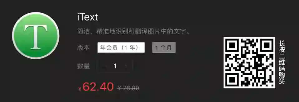 iText 是 macOS 上相当优秀的一款中文 OCR 识别工具。应用借助了腾讯、百度和 Google 三家 OCR 引擎,从而实现了精确识别文字的表现。此外,iText 对于自然语言有着更高的识别率。iText 同时还支持自动翻译等功能,满足你的更多需求。
