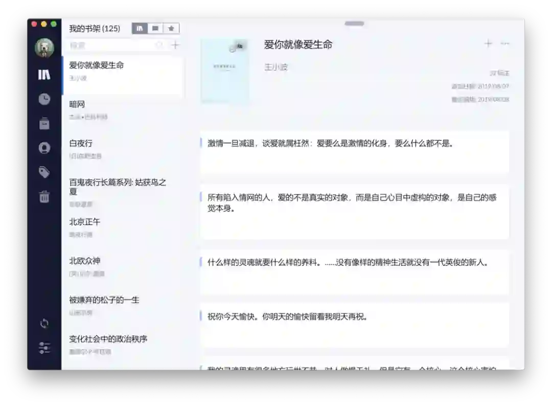 Knotes 是一款 Kindle 标注管理器,在界面设计美观且易用的同时,还支持了 macOS 与 Windows 双平台。Knotes 的导入导出功能非常简单易用,可以从 Kindle、微信读书导入标注,并分享到印象笔记、OneNote 或保存本地文件。自动匹配书籍信息的功能更可以提高你整理标注的效率。