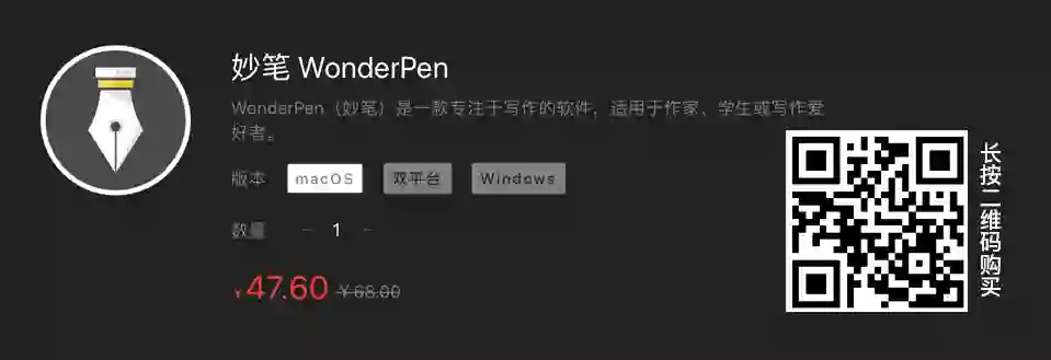 妙笔是你在 Windows 上进行 Markdown 写作的绝佳选择。不管你是写作爱好者还是专业作者,只要你平时有写作的需求,妙笔都能给你带来十分不错的体验。妙笔清晰的文档目录和聚焦模式能让你专注于当前的文字,它的备注功能也可以让你将素材管理得井井有条。