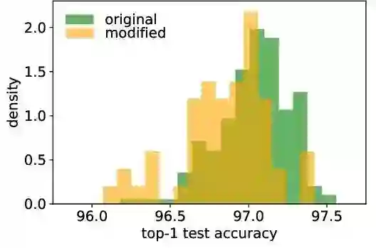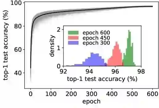 作者从 DARTS 的搜索空间里面随机采样了足够多的结构 (200+)进行训练,想看一下不同的结构之间的方差到底有多大。