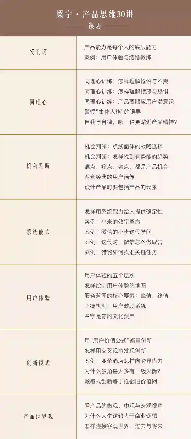 附:《梁宁·产品思维30讲》课程表